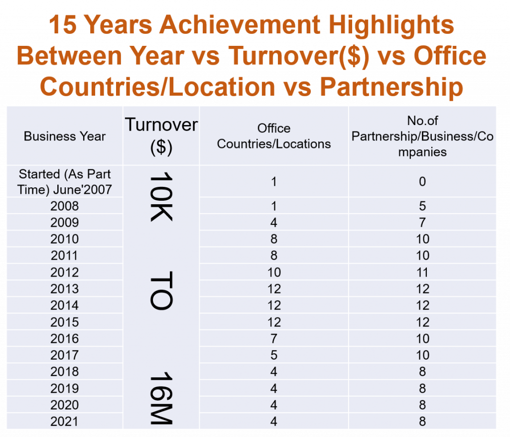 Note: K=1,000.00 & M=1,000,000.00 From 2014 to 2017 Lost Approx. $4M & Present Net worth $2.5M Direct/Indirect Presence = 22 Countries.